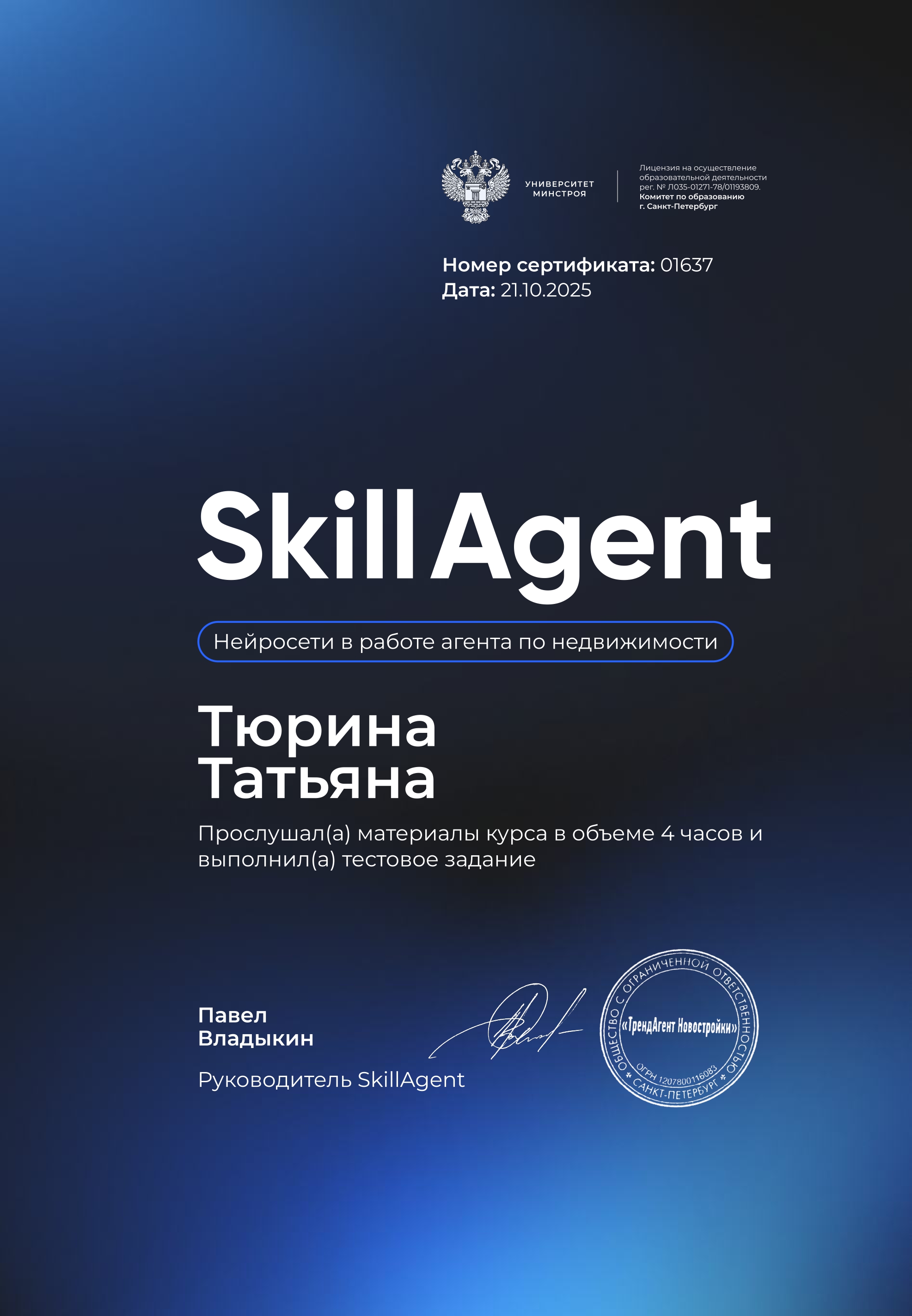 С её помощью мы успешно продали три объекта недвижимости, причём два из них были действительно непростыми. Несмотря на все трудности, Татьяна смогла организовать продажу в кратчайшие сроки, проявив настойчивость, стратегическое мышление и внимание к деталям.