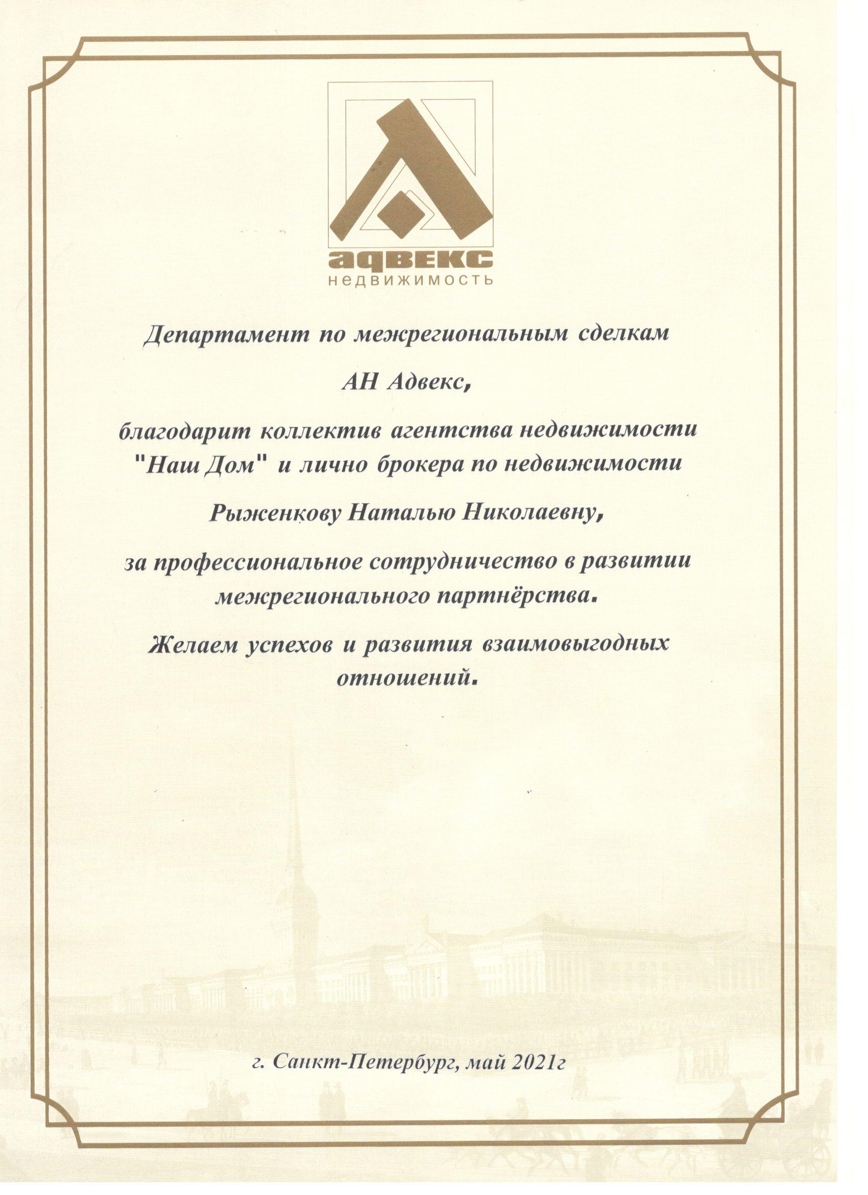 Огромное спасибо профессионалу высокого уровня, Наталье Рыженковой. Несмотря на то, что мы из другого города, весь процесс был организован четко, не было никаких спорных и непонятных моментов в нашем общении. Наталья, максимально заинтересована в продаже, показ и встречи в удобное для клиентов время. Она собирала необходимые документы, решала вопросы с покупателями. Все прошло быстро и четко. Ещё раз выражаю огромную благодарность Наталье Рыженковой, она настоящий профессионал.